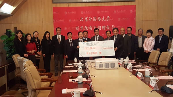 2016年12月20日上午,新華聯集團在北京外國語大學行政樓舉行捐贈簽約儀式,向北京外國語大學捐贈5000萬元,用于支持該校的發展建設。