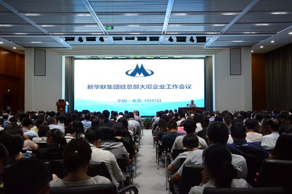 7月21日下午,新華聯(lián)集團(tuán)在北京總部大廈11層多功能廳召開集團(tuán)駐總部大廈企業(yè)工作會議,學(xué)習(xí)傳達(dá)集團(tuán)2017年半年工作會議內(nèi)容和精神。集團(tuán)總部和駐總部大廈各企業(yè)全體職員近500人參加了會議。