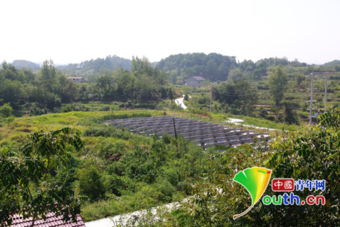 湖南省辰溪縣錦濱鎮石碧村一角,山野中的一抹亮色就是光伏扶貧發電站。中國青年網記者陳琛 攝