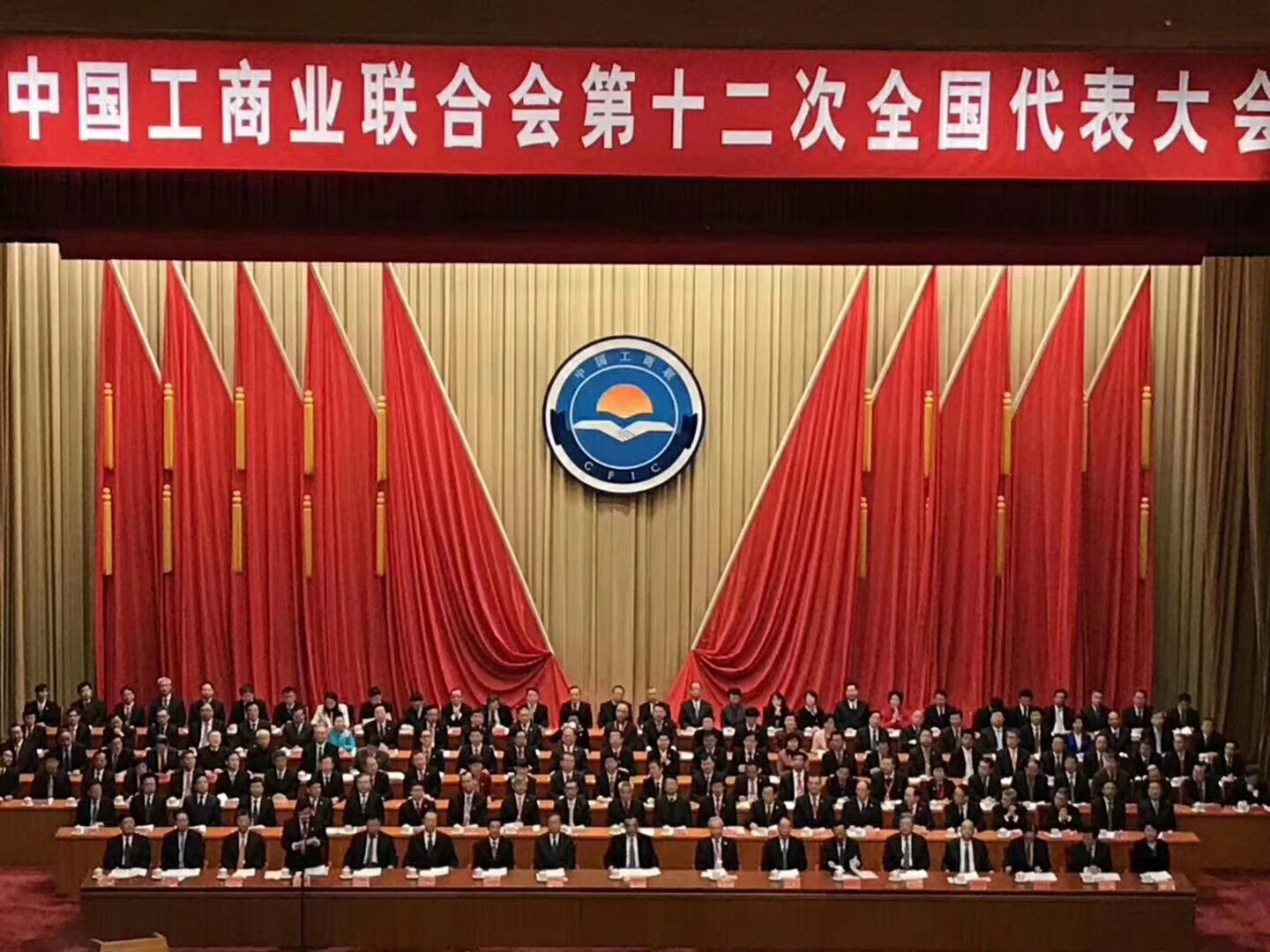 中國工商業(yè)聯(lián)合會第十二次全國代表大會召開時間為11月23—26日。開幕式前的23日晚,大會已召開預(yù)備會議。會議通過了十二大代表資格審查委員會成員名單、十二大主席團成員名單、十二大秘書處機構(gòu)設(shè)置和工作職責(zé),通過了徐樂江為大會秘書長,通過了十二大議程,宣讀了全國工商聯(lián)黨組關(guān)于成立大會臨時黨委的通知。隨即,中國工商業(yè)聯(lián)合會第十二次全國代表大會主席團召開第一次會議。