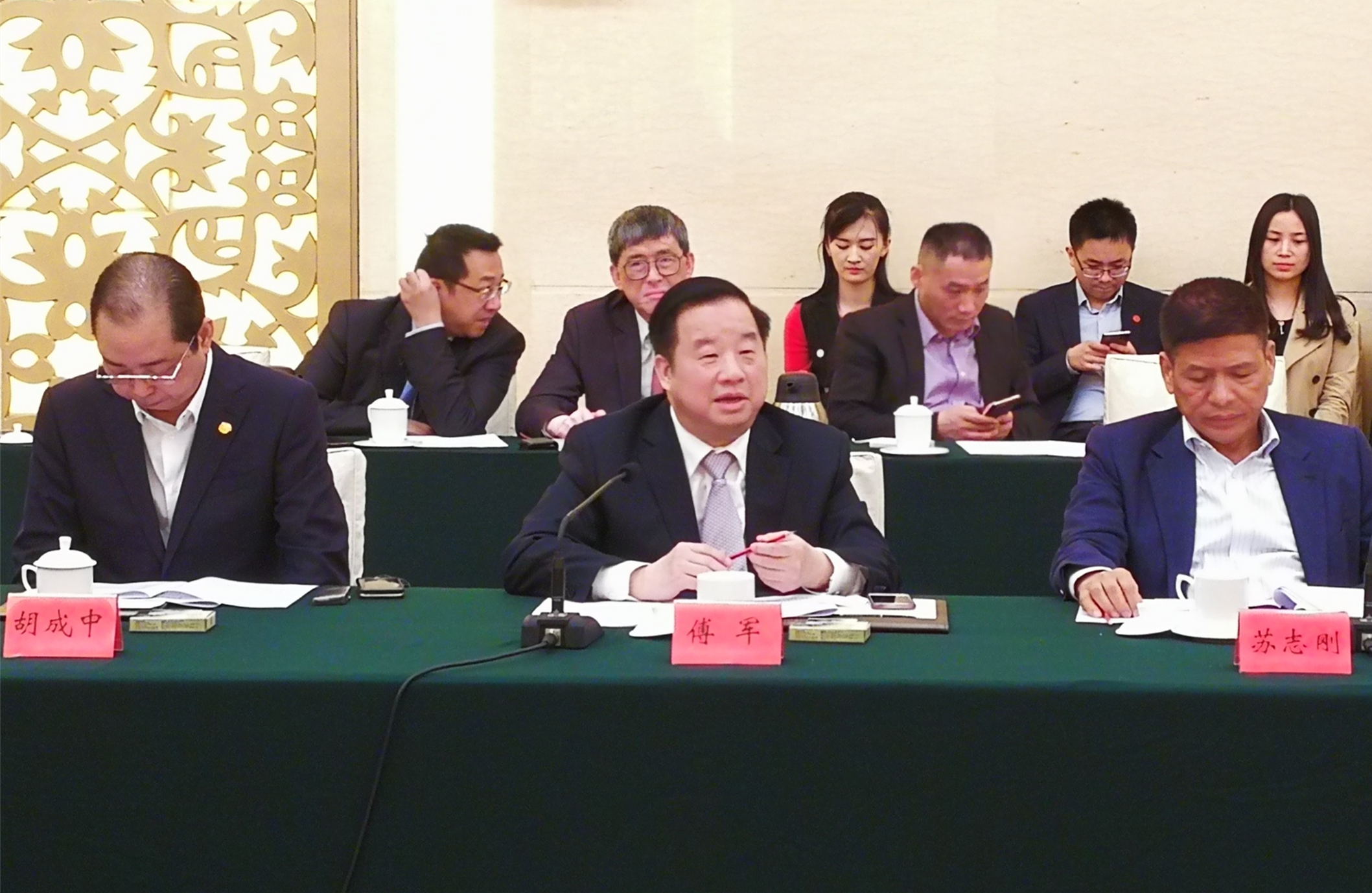 4月18日下午,廣東省在廣州珠島賓館召開推進粵港澳大灣區建設座談會。新華聯集團總裁傅軍應邀出席并作了重點發言。