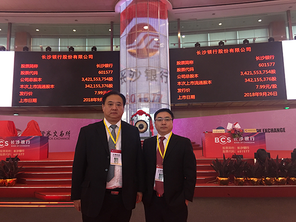 湖南省政府領導、長沙市政府領導、長沙銀行董事長朱玉國、長沙銀行行長趙小中等董事、監事、高級管理人員,相關股東代表、客戶代表、員工代表、中介機構代表及媒體朋友共同出席了上市儀式,見證了這一歷史時刻。
